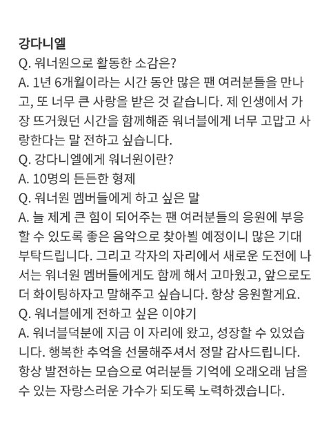 스/포/츠/서/울 워너원활동소감 인터뷰 강다니엘 컷❤
