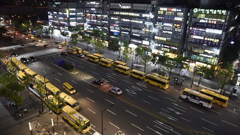 하늘은 씨커먼데 학원간판때문에 번쩍번쩍하고