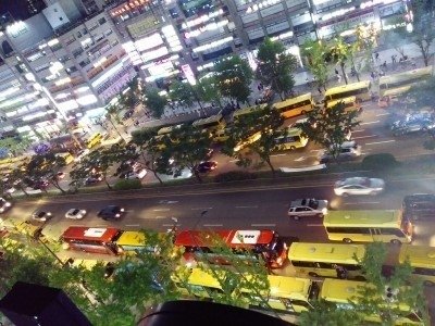 학생들은 건물에서 몇백명씩 쏟아져나옴