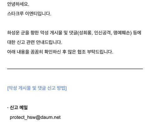 워너원때 악플들은 아티스트 의견으로 선처하기로했고 이제부터의 [[성희롱]], 악플, 까글 등등 강경대응할거래