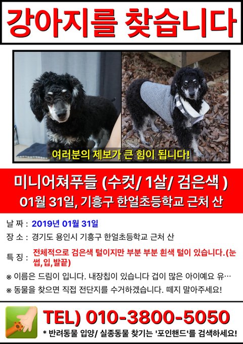 1월31일 경기도 용인시 기흥구 한얼초등학교 근처 산책중에 놓쳤습니다. 유심히 봐주세요 부탁드립니다. 내장칩있구요.. 몇일째 찾아 다녔지만 못찾고있습니다 .. 이름은 드림이 입니다 혹시라도 비슷한 아이라도 보시게 된다면 연락 부탁드리겠습니다