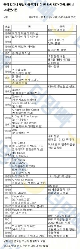 퀸이 얼마나 옛날사람인지 감이 안와서 한국사랑 비교해봤는데