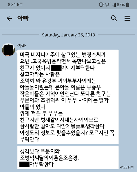 한 분만 찾으시면 모두 연락이 닿을 수 있을 것 같다고 하시네요.