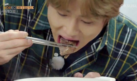 저번에도 그렇고 준면이 먹을때 입 모양이 네모가되네ㅋㅋㅋ엑사세 보는동안 준면이 먹는 모습 많이 보겠다 귀여워