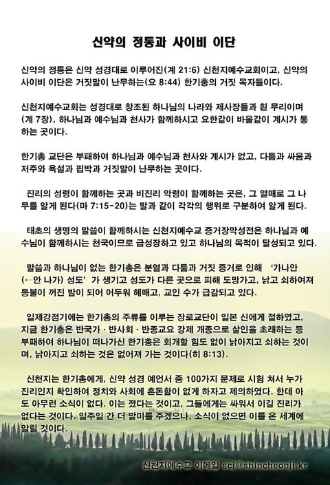오늘은 세상 사람들이 소위 이단이라고 하는 신천지에 대해 말씀드리고자 합니다.