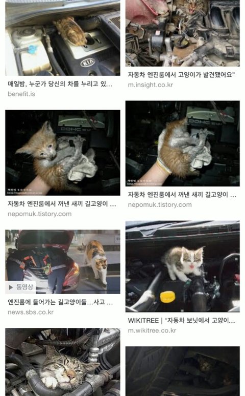 내 친구도 약간 프로걱정러라 매일 아침에 본네트 열어보다가 새끼 고양이 발견해서 이름 (엔)지니 라고 짓고 집사 하고잇어ㅠㅠ