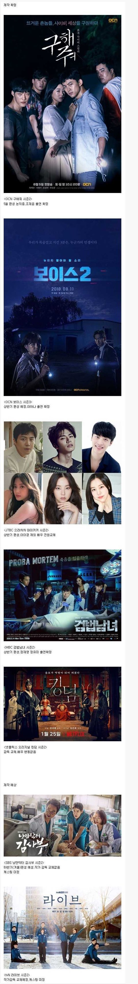 시즌2 제작예정인 드라마 라인업