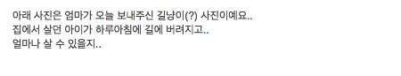 집고양이들 저렇게 길에 버리면 대부분은 길에서 영역싸움 하다가 죽고, 병걸려 죽는게 현실..