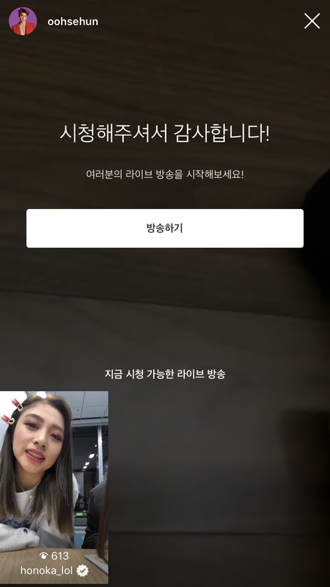 세훈이 라이브 들어간지 2초만에