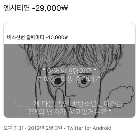 방탄이면 -10,000원, 엔시티면 -29,000원