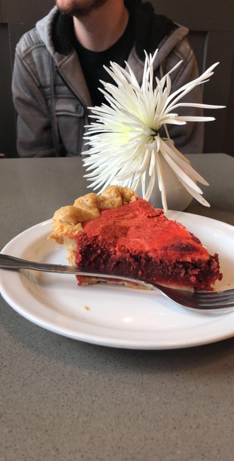 친구들이랑 학교 프로젝트 끝내고 자축하러 와서 사먹은 파이!! 레드벨벳은 진리죠