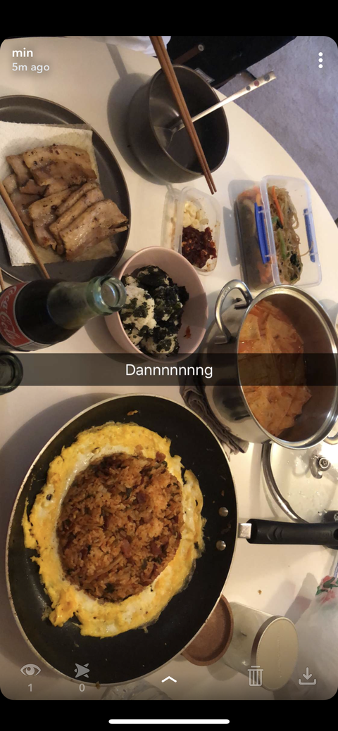 삼겹살이랑..감치볶음밥이랑..떡볶이 했어요 ㅎㅎ