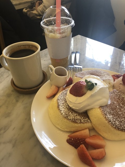 오므라이스 먹고 2차로 수플레 팬케이꾸