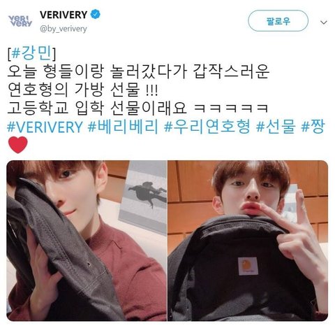 입학 선물 받았다는 베리베리 강민이