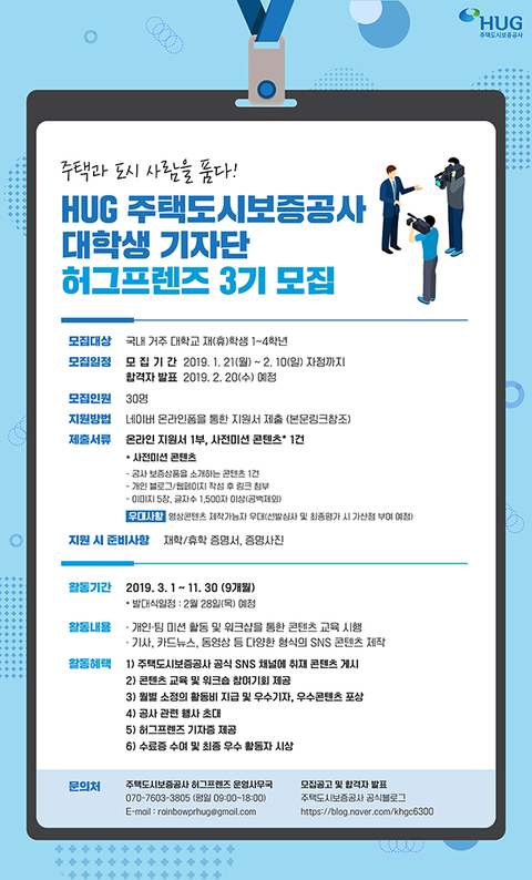 주택도시보증공사 대학생 기자단 허그프렌즈 3기를 모집합니다!