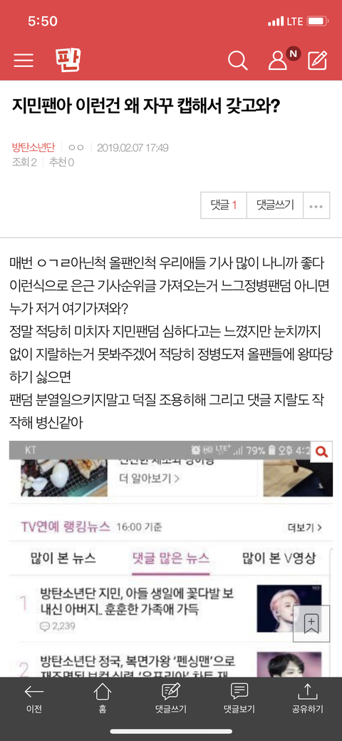 지민팬아 이런건 왜 자꾸 캡해서 갖고와?