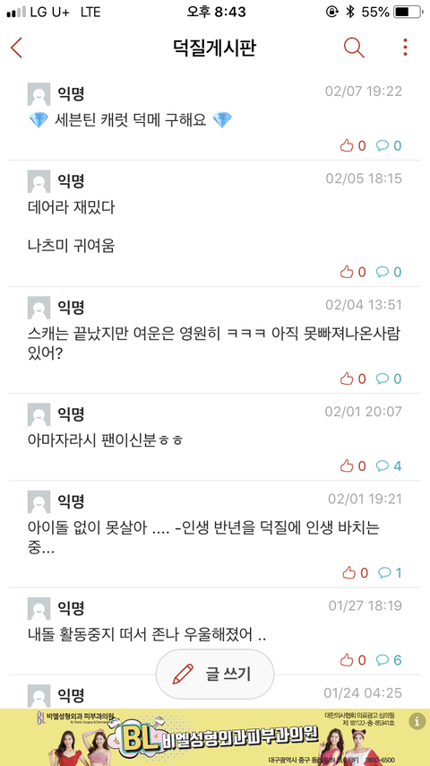 덕질 게시판엔 글도 잘 안 올라와ㅠㅠ퓨ㅠㅠㅠㅠ 씨리 얘기로 활성화시키고 싶다..