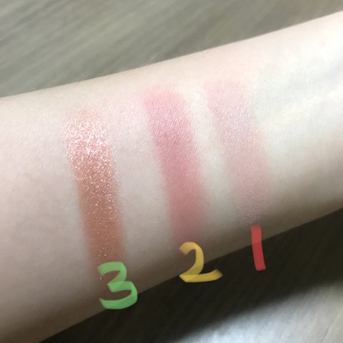 : 위는 섀도우 2개, 아래는 블러셔로 구성되어 있는데 눈화장할때 블러셔도 섀도우로 사용했어!