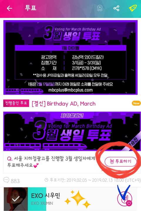 이번 아챔투표는 강남역에 생일 광고를 걸어주는 중대한 투표라구여!!!