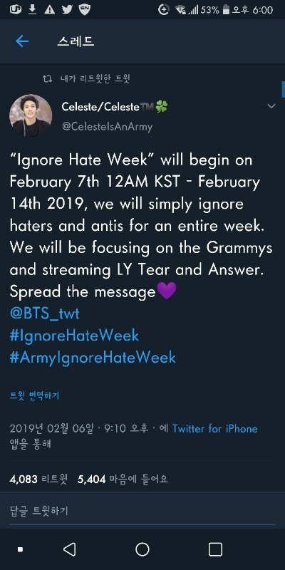2월 7일~2월14일 이 기간 동안 안티, 어그로, 악개, 팬코 등 행복한 덕질? 을 방해하는 것들을 무시하고 그.래미와 우리 럽욜셀 앨범 스밍, 뮤스에 집중하자는 내용이야