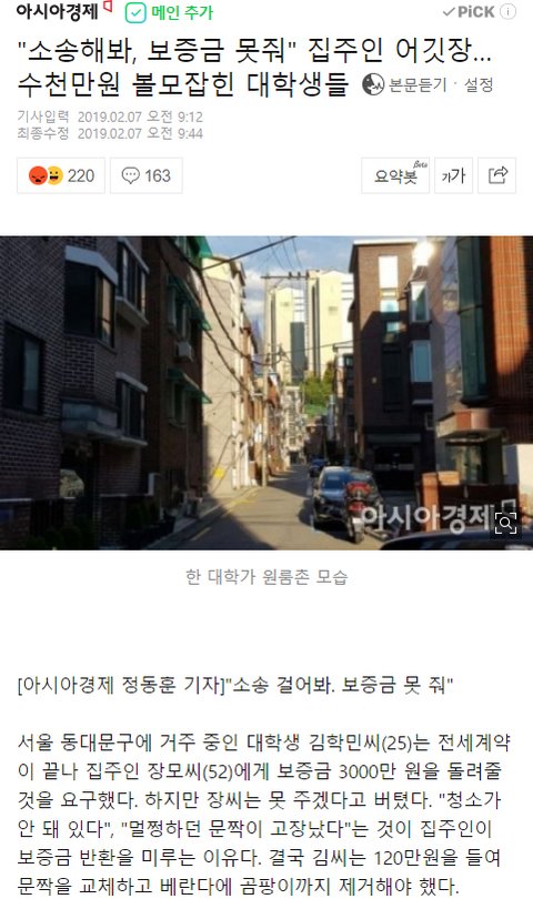 집주인에 보증금 볼모 잡힌 대학생들