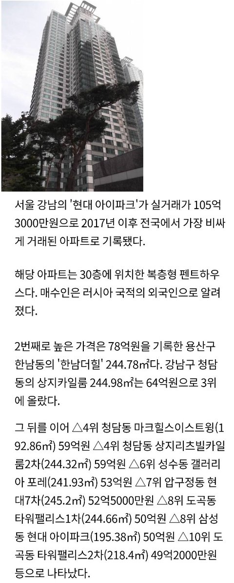 8회 국내에서 제일 비싼 아파트
