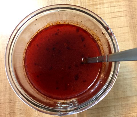 고추기름이 없을땐 식용유에 고추가루를 넣고 라조장을 넣어줍니다.