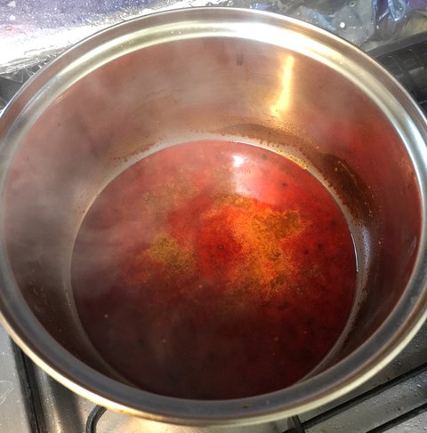 국물 섞어둔것을 냄비에 끓여요.