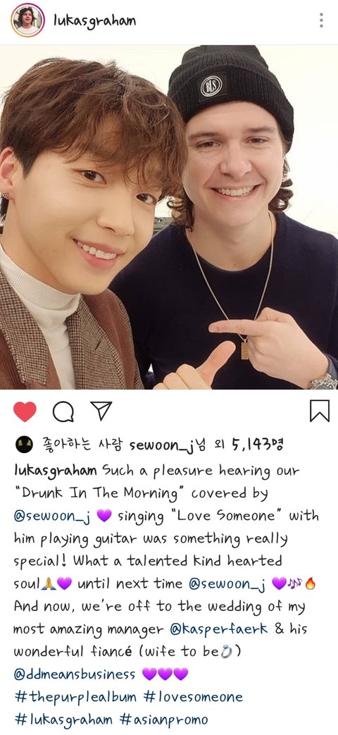 심지어 루카스 그레이엄이 재능있고 마음씨고운 영혼이라며 다음에도 만나길바란다고 인스타에 정세운 태그하고 올림.