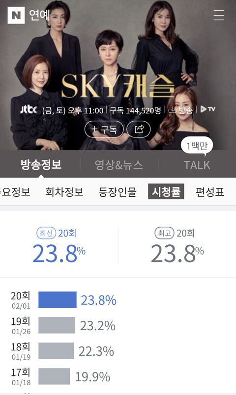 스카이캐슬 근데 시청률 20% 넘었구나ㄷ