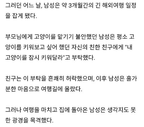 “해외여행 때문에 3달간 친구에게 맡긴 고양이가 `확대` 받고 있었습니다”