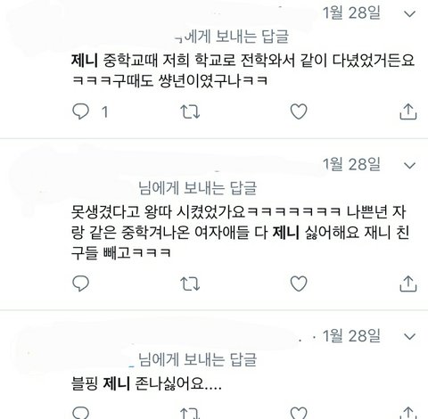 아니 근데 다 증거도 없자너ㅋㅋㅋㅋㅋㅋ저걸 어케 믿어..뭐 다 제니랑 같은 학교출신이냐
