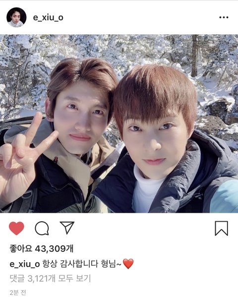시우민 인스타 업뎃! 횽님 윌슨씨와 다정한 투샷