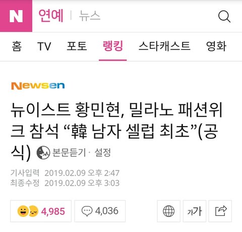 거기다 한국 남성셀럽 최초라늬ㅠㅠㅠㅠ 민현아 누나가 응원한다 역시 우리 패셔니스타 황민현! 이젠 세계가 알아준다구♥♥♥♥