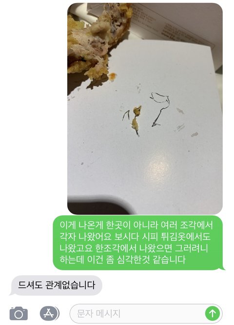 치킨에서 이물질이 나올수 잇습니다