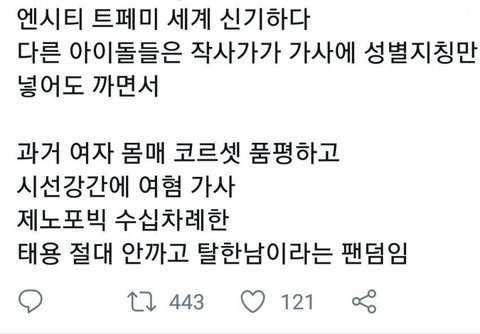 정치질만 잘해서 이글도 묻을듯ㅋㅋㅋ태용악개들 인기는 없는데 악개만 많기로 유명...