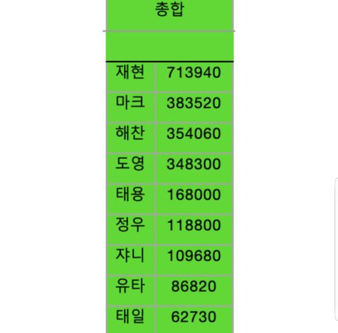 태일 쟈니 태용 유타 도영 재현 정우 마크 런쥔 제노 해찬 재민 천러 지성