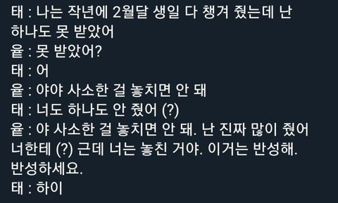 태용이 2월 생일 멤버들에게 자기는 생일 선물 줬는데 못받았다고 말함