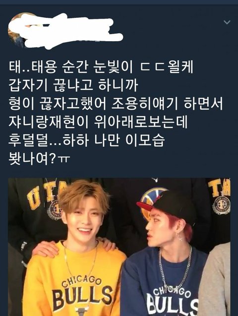 거기다 심지어 태용은 외국멤이랑 동생들 꼽 자주주기로 유명한멤버