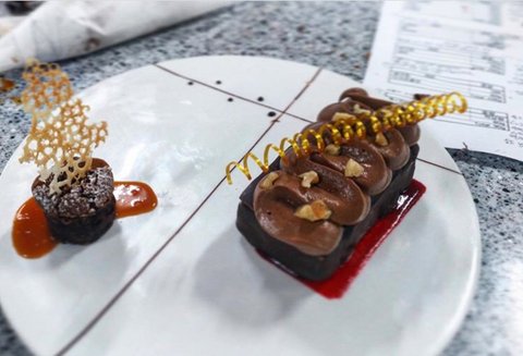 캬라멜 파운드 케이크랑 라즈베리소스와 브라우니,캬라멜소스,디저트용 튀일이랑 설탕공예 장식용이야