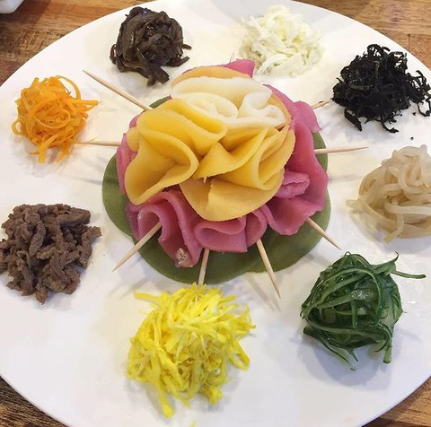 전병은 백년초가루 단호박가루 녹차가루로 색내서 부치고 식힌다음에 모양잡아줬어 모양 잡아주느라고 이쑤시개 한거야 ㅠㅠ