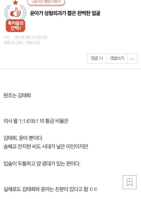 윤아보다 일반인이 예쁘다고 하니깐 그 대상을 비교하는 사람을 패는게 아니라 일반인 외모 평가하는 클라스