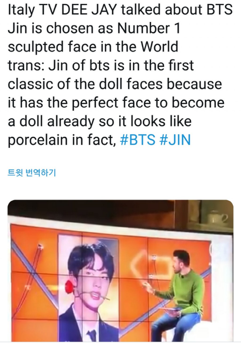 Italy TV DEE JAY talked about BTS Jin is chosen as Num 1 sculpted face in the world