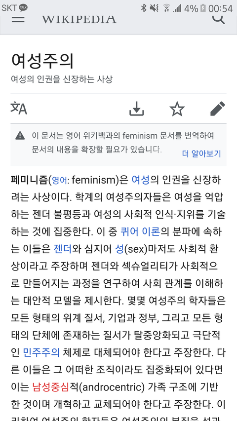 어학적으로나 역사적으로나 페미니즘이란건 절대 성평등은 아니야