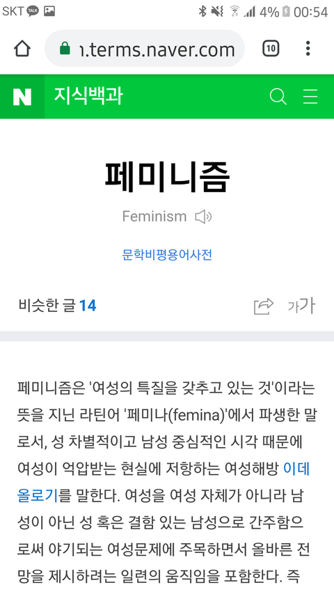 페미니즘은 여성주의 라는 뜻이야 절대 성평등주의가 아니지