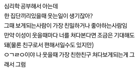 생각해보면 둘다 서로한테 호감 있어서 그 순간에 서로 무의식적으로 본 거 같음ㅋㅋ 나중에 걔한테 고백받았었거든 저 짤 ㄹㅇ이다