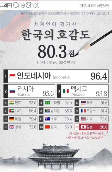 세계인이 평가한 한국의 호감도