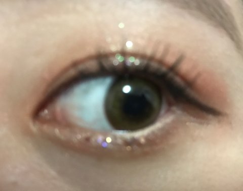 눈위 글리터는 클리오 프리즘 에어 섀도우 16 코랄이고 애굣살에는 홀리카 홀리카 아이 스팽글리터 2호 발랐엉