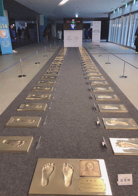 행사장 내 평창의 기록이 담긴 사진, 선수들 발도장 조형물 등이 있는데
