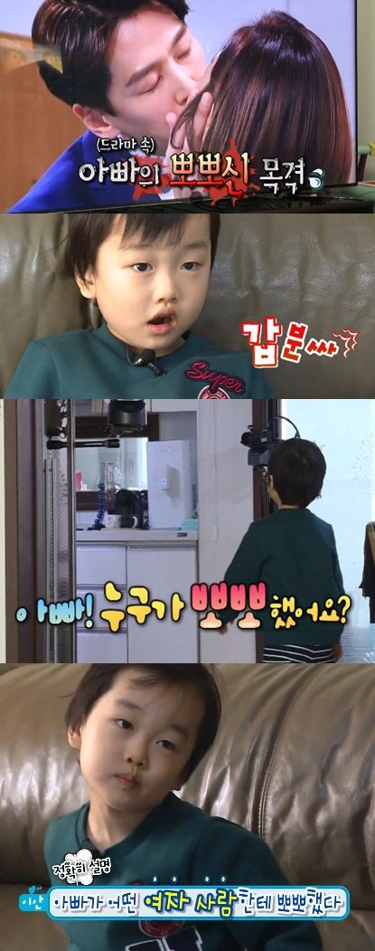 식사 후, 아빠의 키스신을 본 아들의 반응.